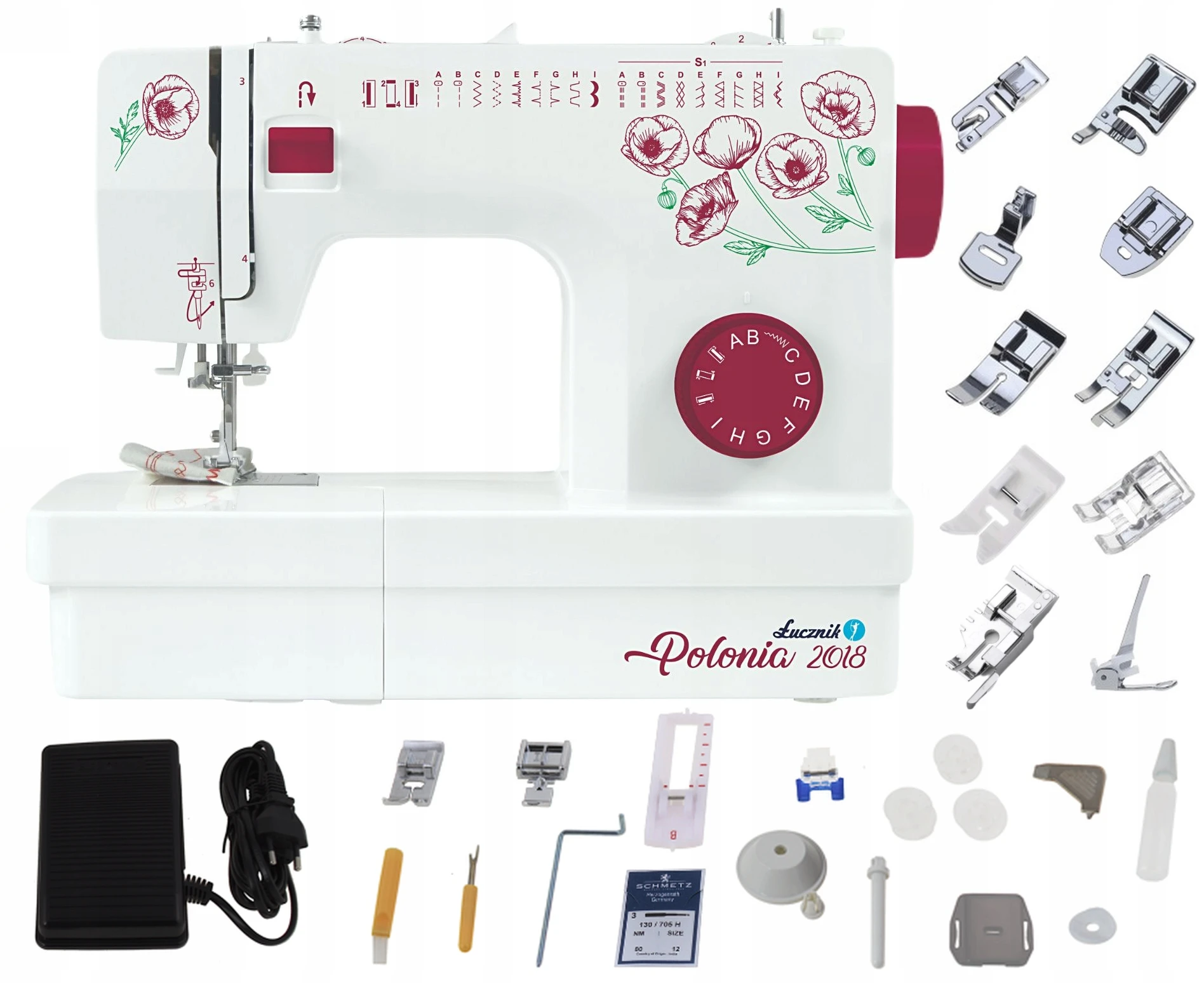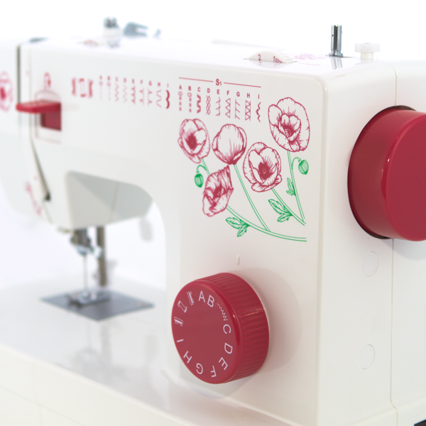 Model wyróżnia się unikalnym designem z motywem czerwonych maków, przygotowanym z okazji 100-lecia odzyskania niepodległości przez Polskę. Dzięki temu maszyna łączy funkcjonalność z wyjątkowym, patriotycznym charakterem. Estetyczne wykonanie sprawia, że może być również ozdobą domowej pracowni. To limitowana wersja, która cieszy się dużym zainteresowaniem wśród użytkowników. Stanowi połączenie tradycji i nowoczesnej funkcjonalności.