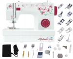 - Wyposażenie: stopki, igły, szpulki, oliwiarka, prujka, pokrowiec i akcesoria konserwacyjne