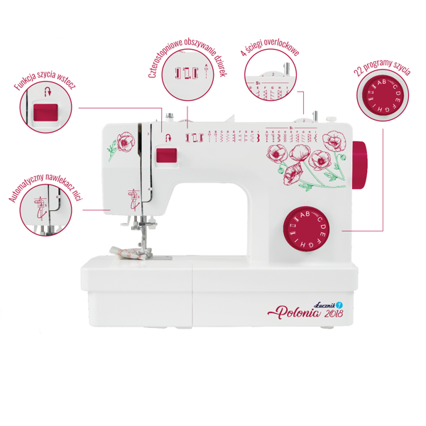 Łucznik Polonia 2018 to prosta i funkcjonalna domowa maszyna do szycia, idealna do codziennych napraw i podstawowych prac krawieckich. Wyposażona w 22 ściegi, automatyczny nawlekacz igły oraz regulację parametrów szycia, zapewnia wygodę i precyzję pracy. To limitowana edycja stworzona z okazji 100-lecia niepodległości Polski, wyróżniająca się unikalnym wzorem czerwonych maków. Doskonała mechaniczna maszyna do szycia dla domu i początkujących użytkowników.