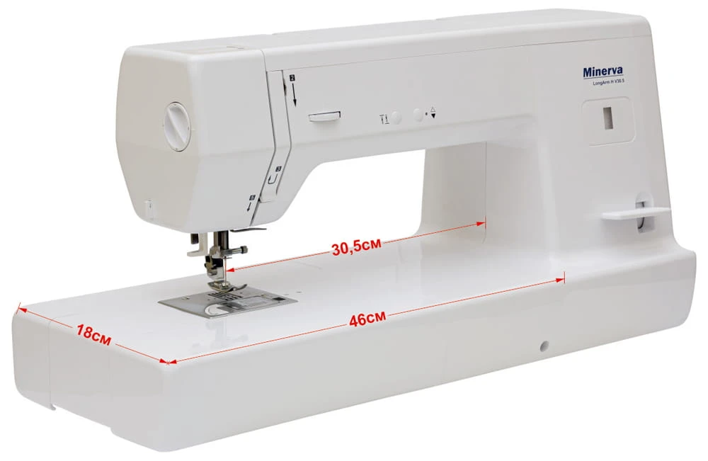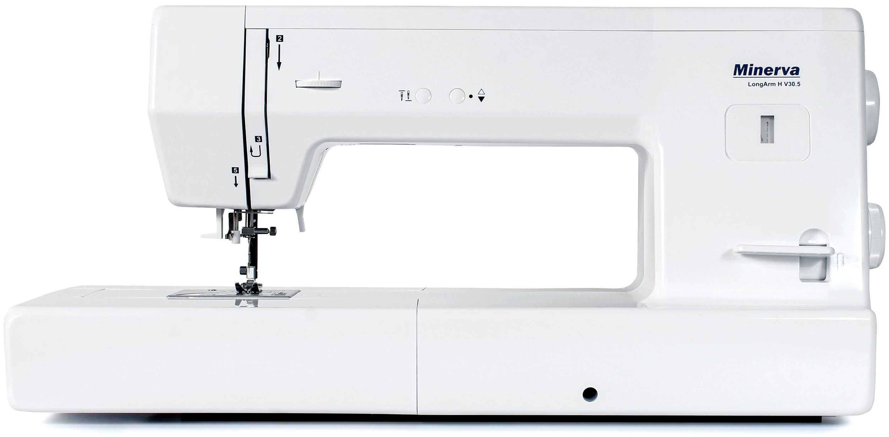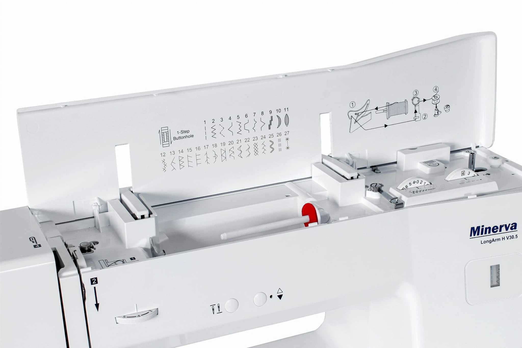 Minerva LongArm Hv30.5 to zaawansowana mechaniczna maszyna do szycia z długim ramieniem, idealna do quiltingu, patchworku oraz szycia dużych projektów. Przestrzeń robocza 30,5 cm zapewnia wyjątkowy komfort pracy. Mocny silnik 90 W oraz metalowa konstrukcja gwarantują trwałość i stabilność szycia. To doskonała maszyna do szycia dla wymagających użytkowników i pasjonatów patchworku.