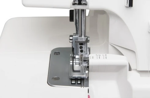 Urządzenie jest wyposażone w regulowany docisk stopki i transport różnicowy, co ułatwi szycie materiałów elastycznych takich jak dzianina, jersey.