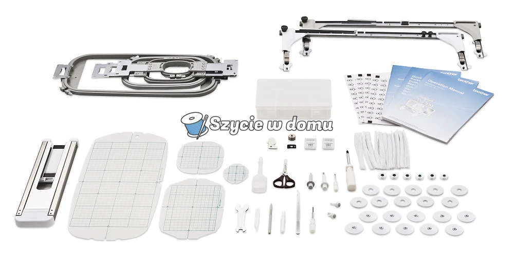 Bardzo duży obszar haftu i różnorodność dołączonych i opcjonalnych tamborków zapewniają elastyczność tworzenia wielu projektów, od kurtek i koszulek po skarpetki i ubranka dla dzieci.