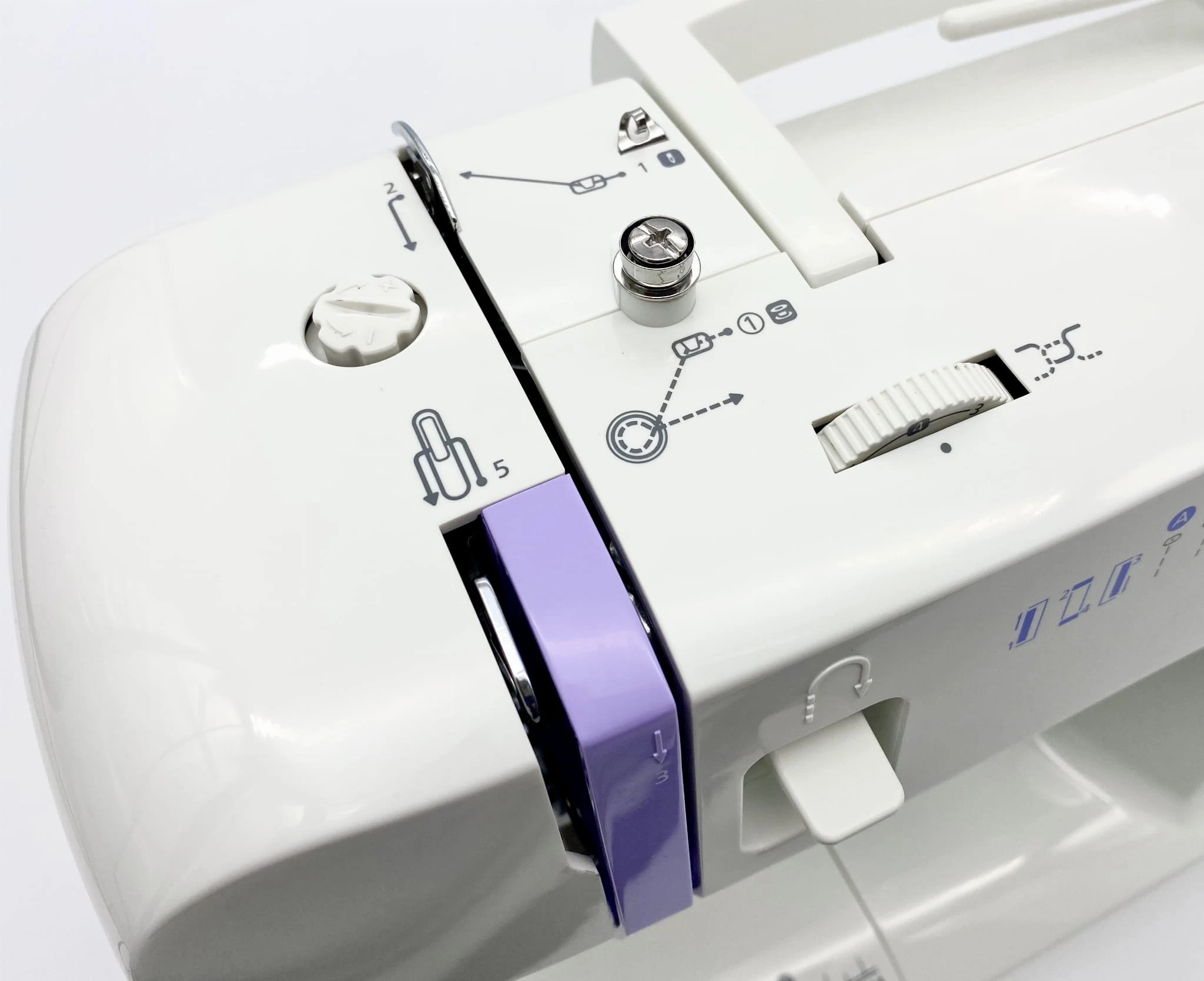 Silnik o mocy 70 W zapewnia płynną pracę przy prędkości 850 wkłuć na minutę. Stabilna konstrukcja oraz odpowiednia waga urządzenia ograniczają drgania podczas szycia. Funkcja szycia wstecz wzmacnia początek i koniec ściegu, zwiększając trwałość szwów. Maszyna świetnie sprawdza się w codziennych naprawach oraz szyciu odzieży domowej. To niezawodne rozwiązanie do regularnego użytkowania.