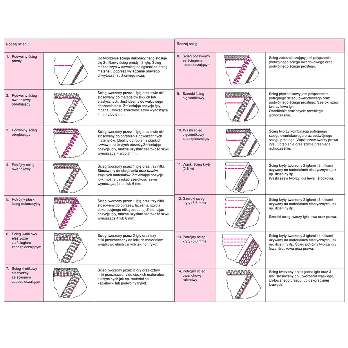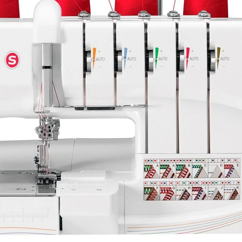 Owerlok 14T968 umożliwia wykonie ściegu i wykończenia materiału w czasie o połowę krótszym niż za pomocą maszyny do szycia. Model ten wyposażony został w funkcję automatycznego nawlekania dolnego chwytaka, kolorowy schemat nawlekania nici, regulację naprężenia nici, transport różnicowy oraz posiada wbudowaną funkcję rolującą. Użytkownik ma do wyboru w tym modelu 13 ściegów, może również regulować długość i szerokość ściegu, a także docisk stopki.